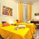 Mediante solicitação, é possível adicionar uma quarta cama, garantindo maior flexibilidade. As paredes amarelas transmitem calor e criam uma atmosfera agradável e tranquila.
